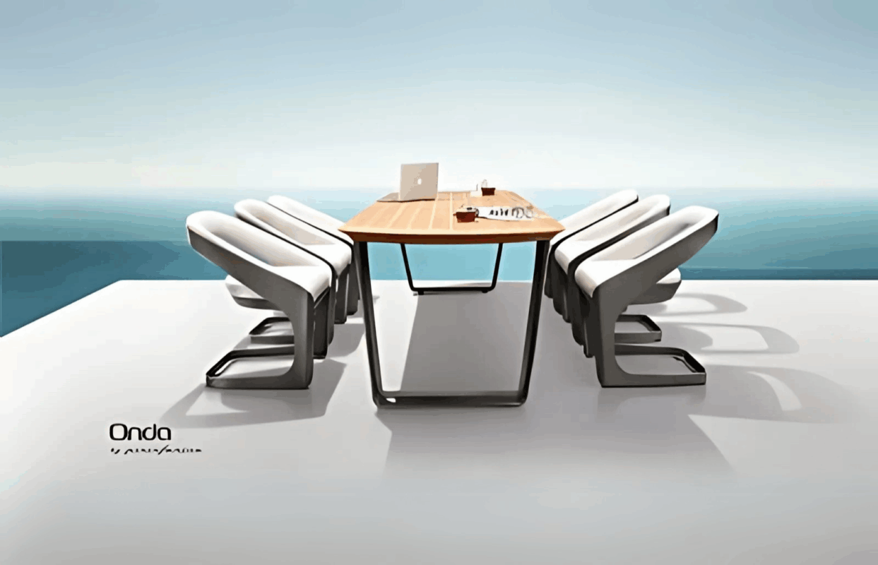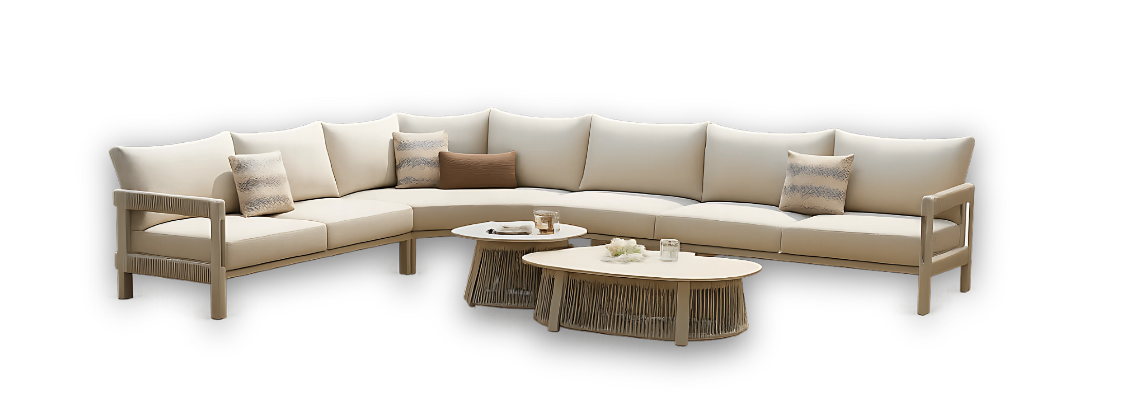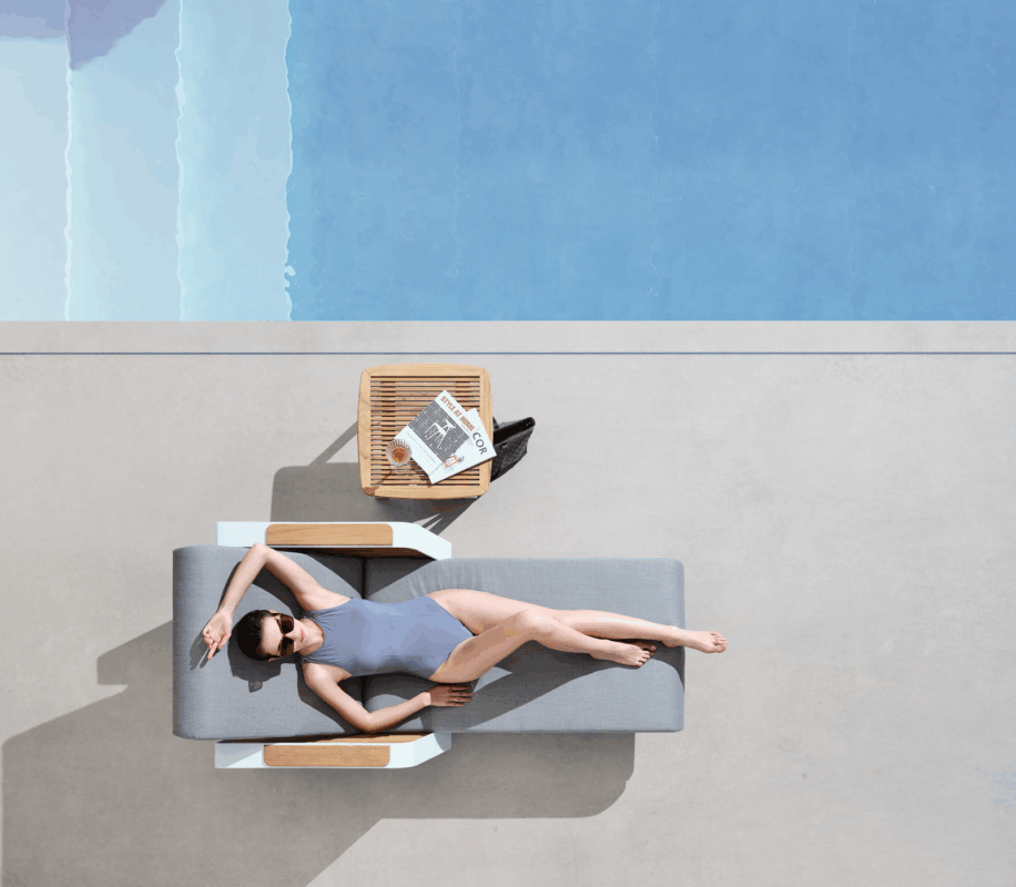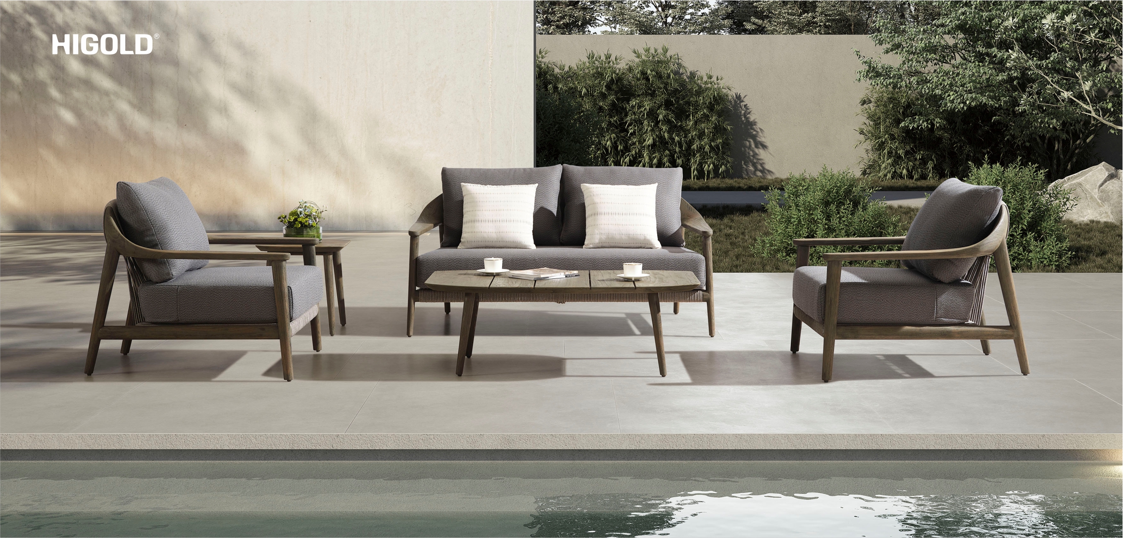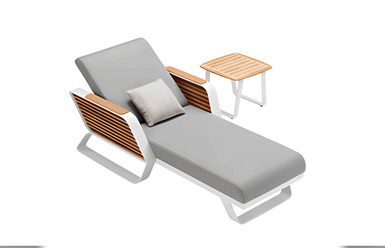Алюминий, тик ағашы және ылғалға төзімді жастықтар оны террассалар, бақтар және кафелер үшін мінсіз етеді.